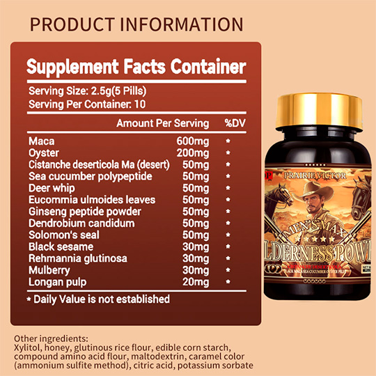 Prairie Victor Wilderness Power is specially formulated for you: a blend of 13 natural ingredients (including 6000mg of premium maca) to help you maintain stable energy, daily nutrition, and vitality.